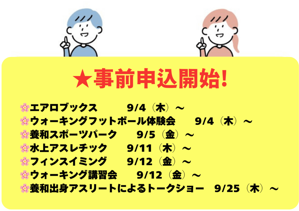 9月4日より各イベントの事前申込みが始まります! 2025.09.03 10月13日に開催されるフェスタの事前申し込みが必要なイベントの申込みが順次始まります!お申し込みはそれぞれのイベントページから申込みサイトに進み、お手続きください。
