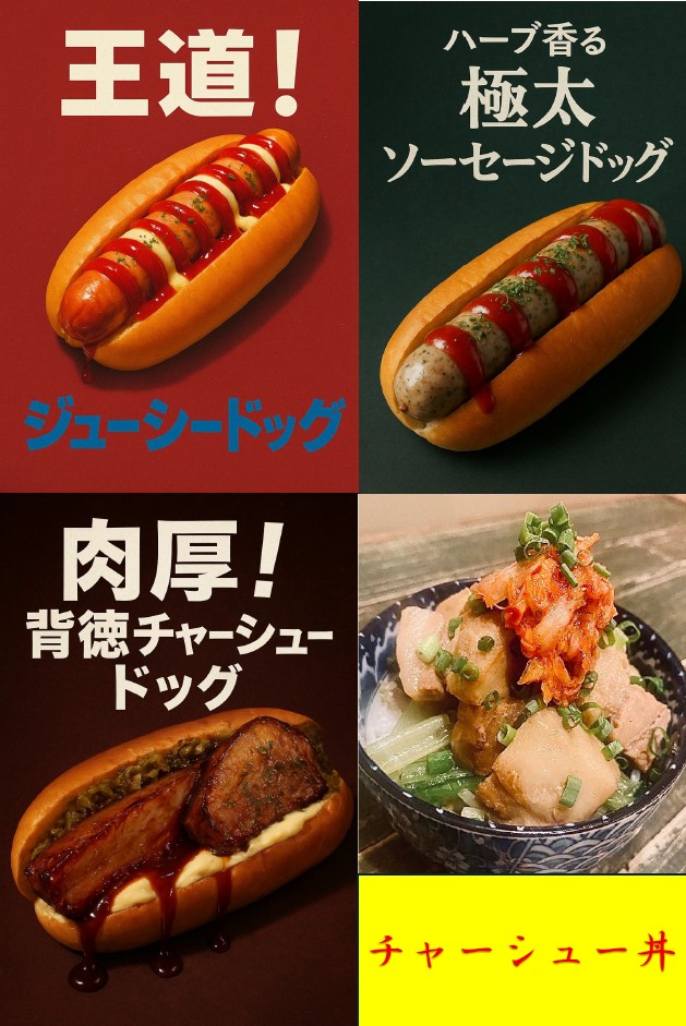 ・Food Truck Studio (お食事) ジューシードッグ・ソーセージドッグ550円、チャーシュードッグ600円
